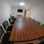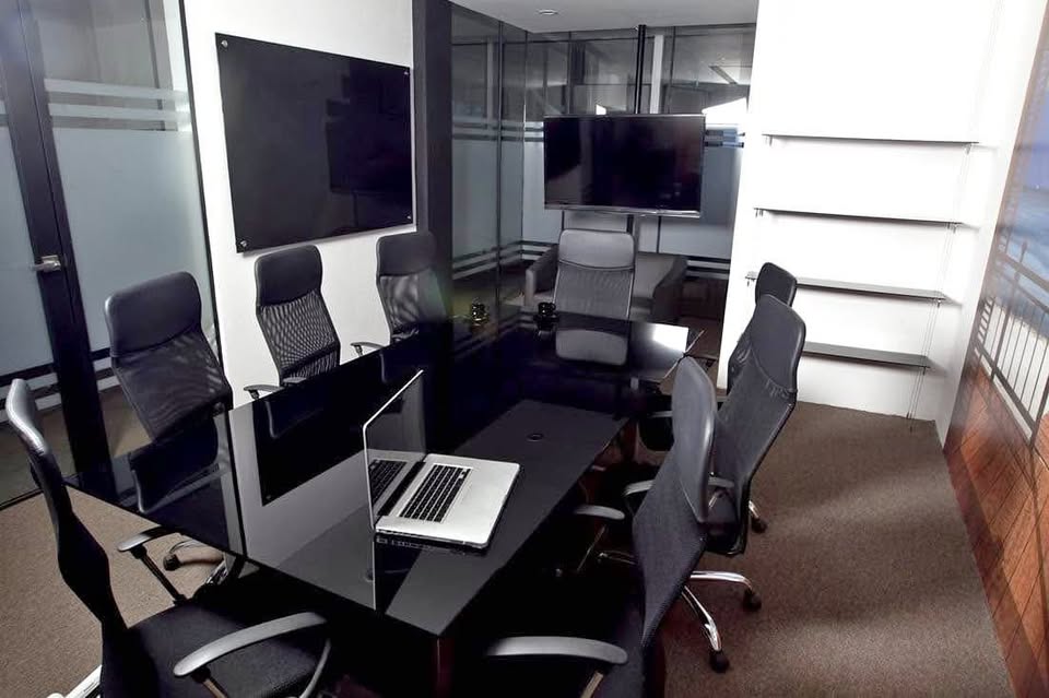 📺 Área abierta de trabajo con tele para presentaciones y conferencias.